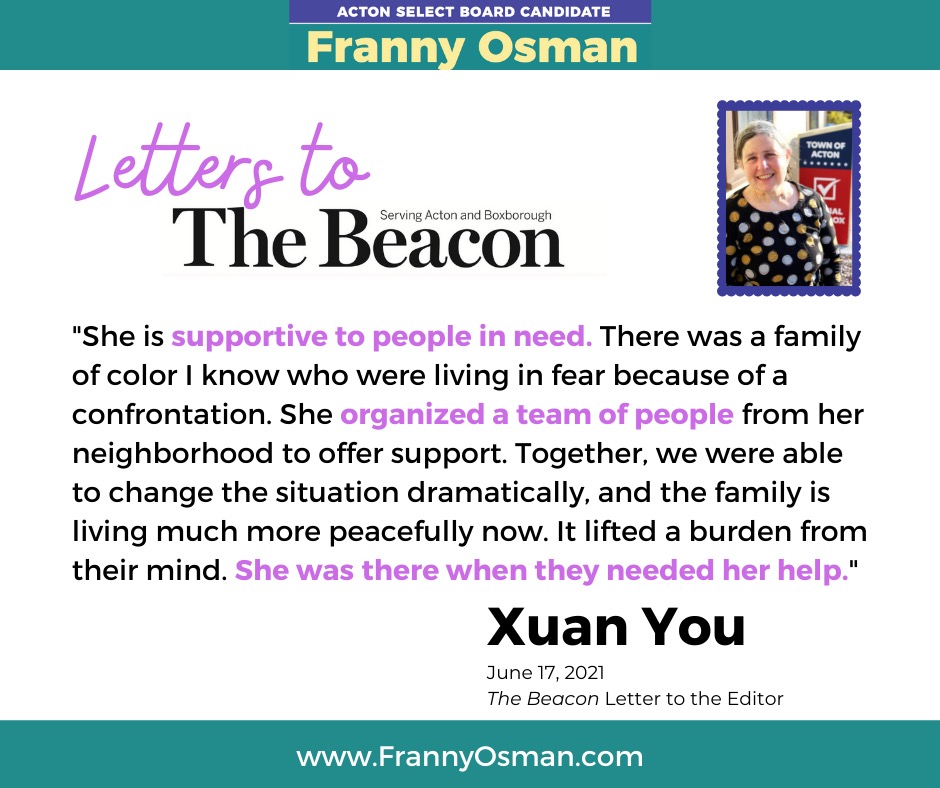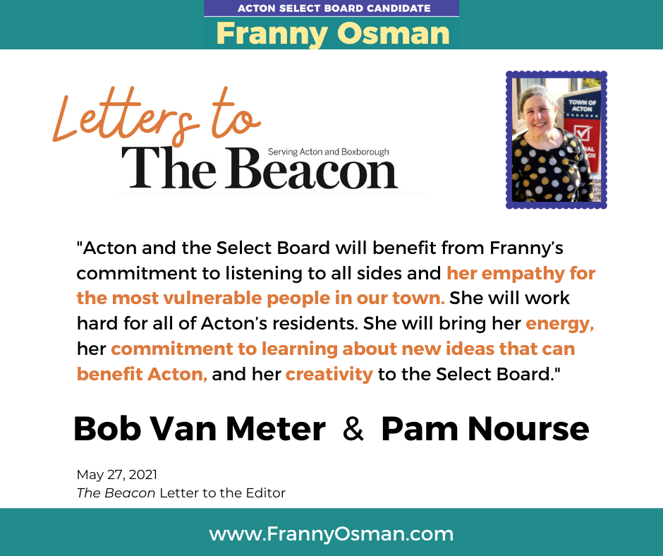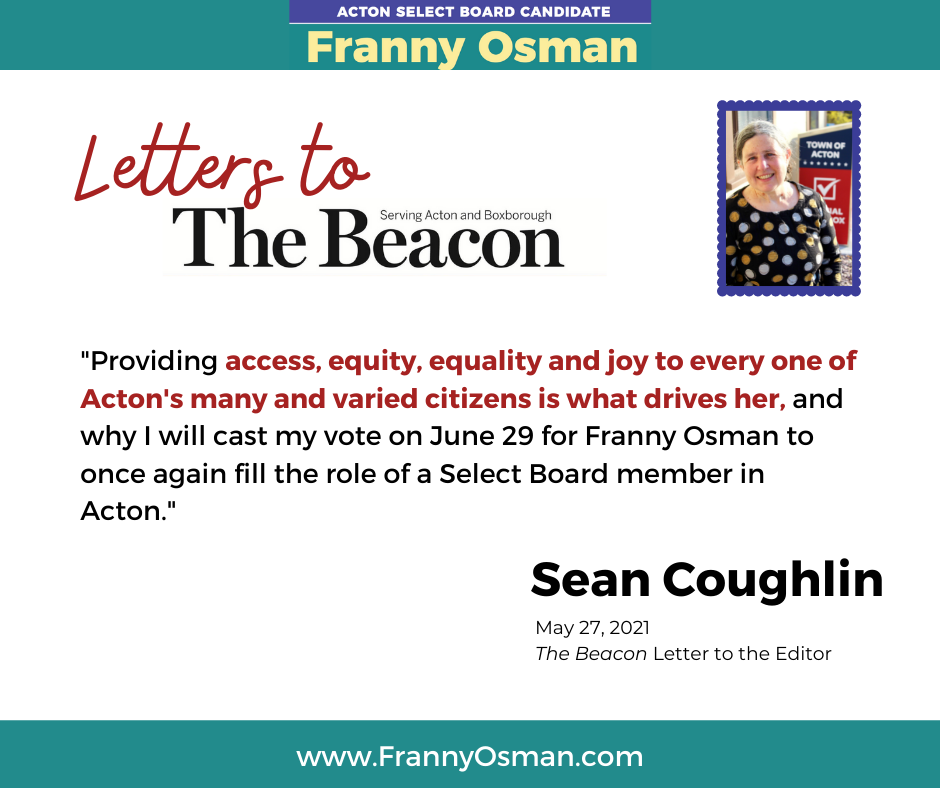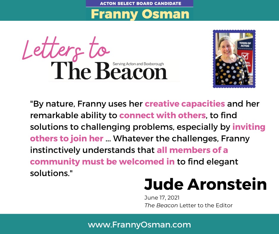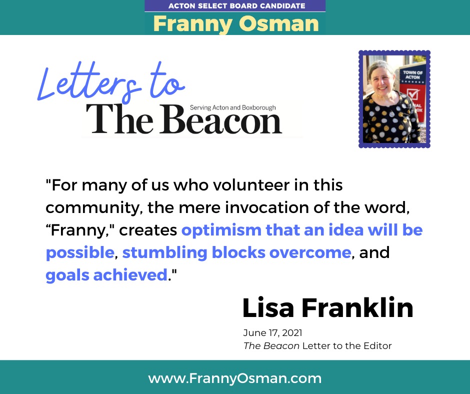 Vote for Franny Osman for Select Board in the Special Election, June 29, 2021